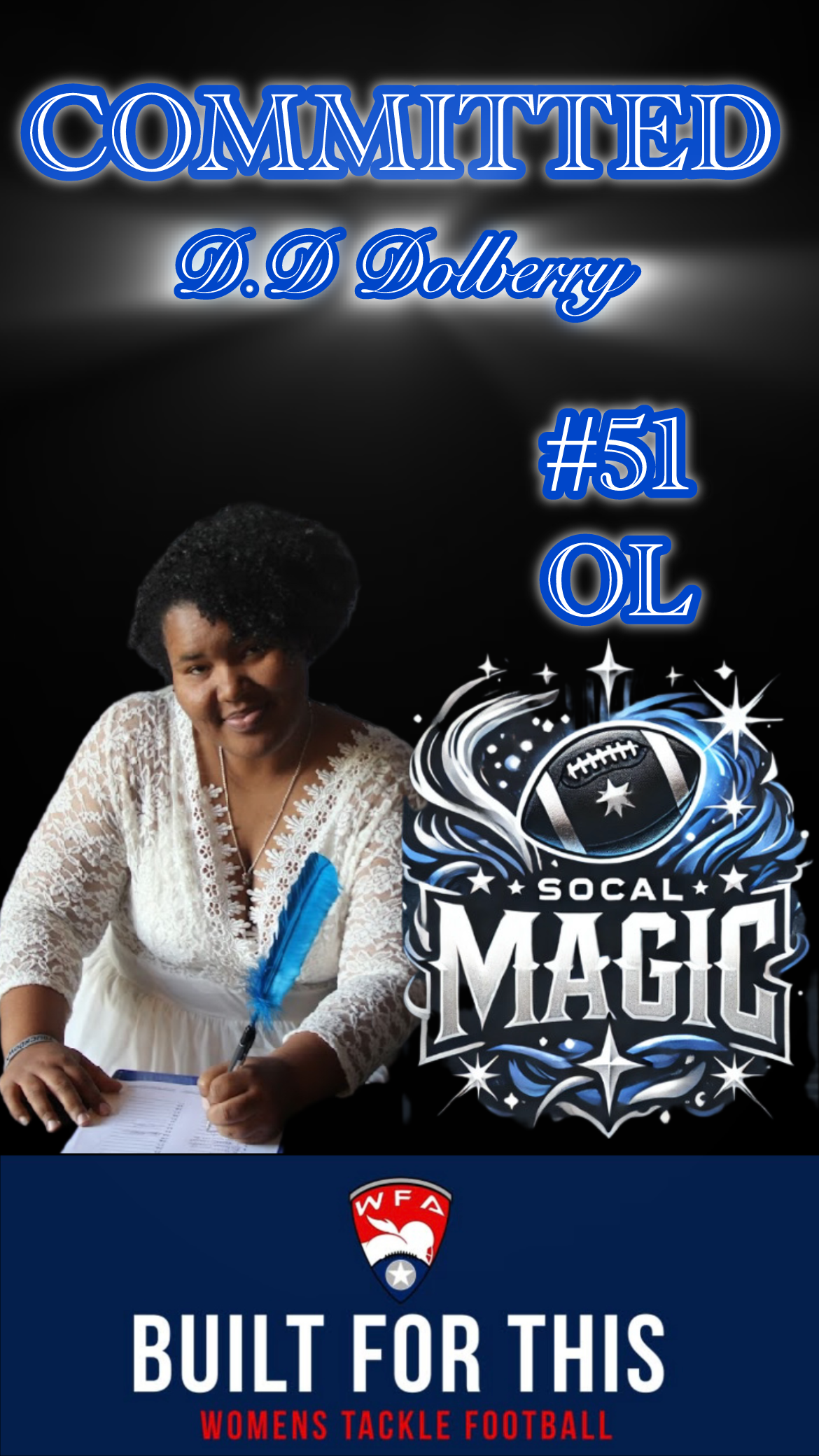 I was told no since I was little. I play for the girls that are told football is for boys. I want to be the example to women and girls alike that you can be anyone you choose! I am a competitor and the release that I feel when I’m on the gridiron is unmatched. The bonds that I have made through this sport are ironclad. I play for ME!